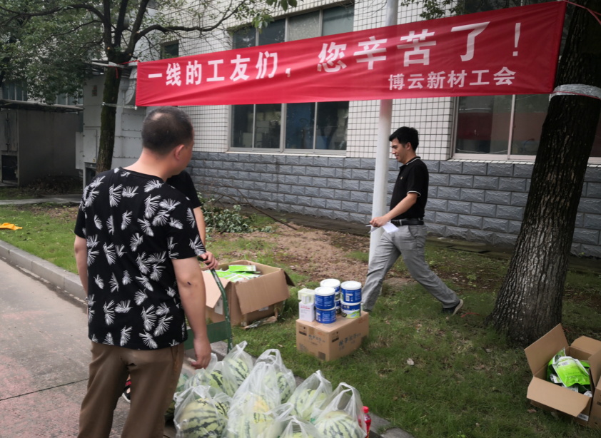 为关心一线员工身体健康,传递公司对员工的关爱,博云新材工会精心设计了送清凉计划,向一线员工派发西瓜、王老吉、花露水、凉茶等防暑物资。