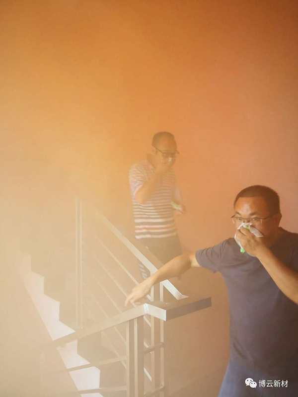 原来,这是博云新材举办的消防安全模拟火情逃生演练。